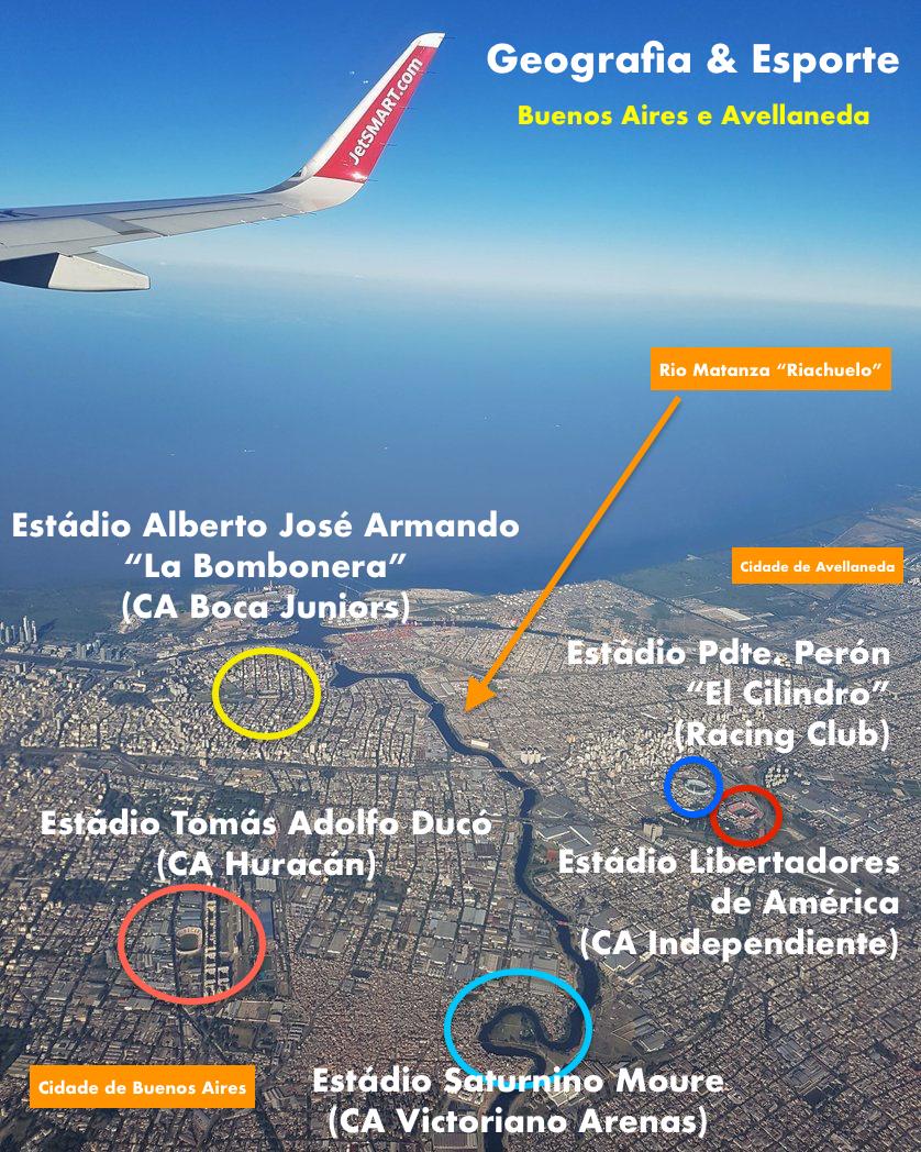 Recebi esta foto há uns dias, que desafiava-me a identificar estádios de futebol em Buenos Aires e Avellaneda (Grande Buenos Aires), com seus respectivos clubes.