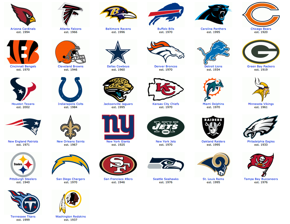 A NFL (futebol americano) e suas equipes (Fonte: nfl.com)
