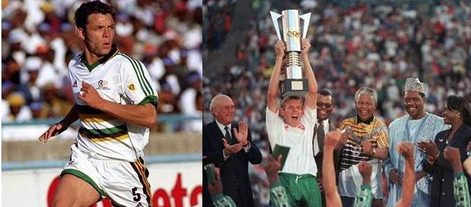Há mais negros hoje no rugby sul-africano de alto-rendimento do que brancos no futebol. E havia mais antes. Exemplos não faltam: Nos anos 1990, os dois craques dos Bafana-Bafana (montagem acima) eram brancos: Mark Fish e Neil Tovey (capitão da equipe campeã da Copa Africana de Nações de 1996). Hoje, as principais estrelas dos Springboks são negras: Cecil Afrika, Bryan Habana, por não falar em Tendai Mtawarira (montagem abaixo).